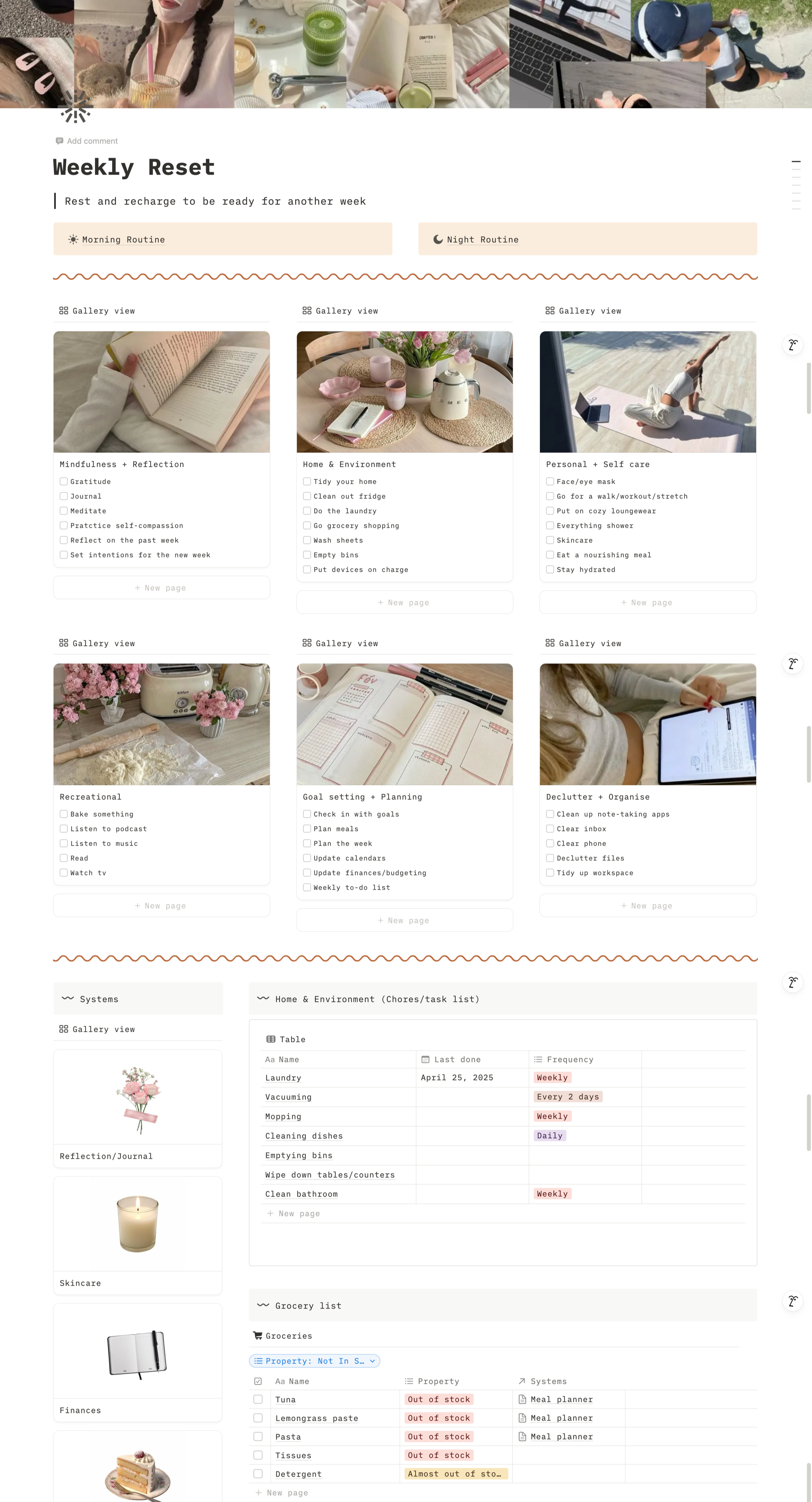 Take 10 minutes at the start of your week to slow down, reflect, and reset. This minimalist Notion template helps you organise your priorities, set intentions, and make space for self-care — all in one calming view.