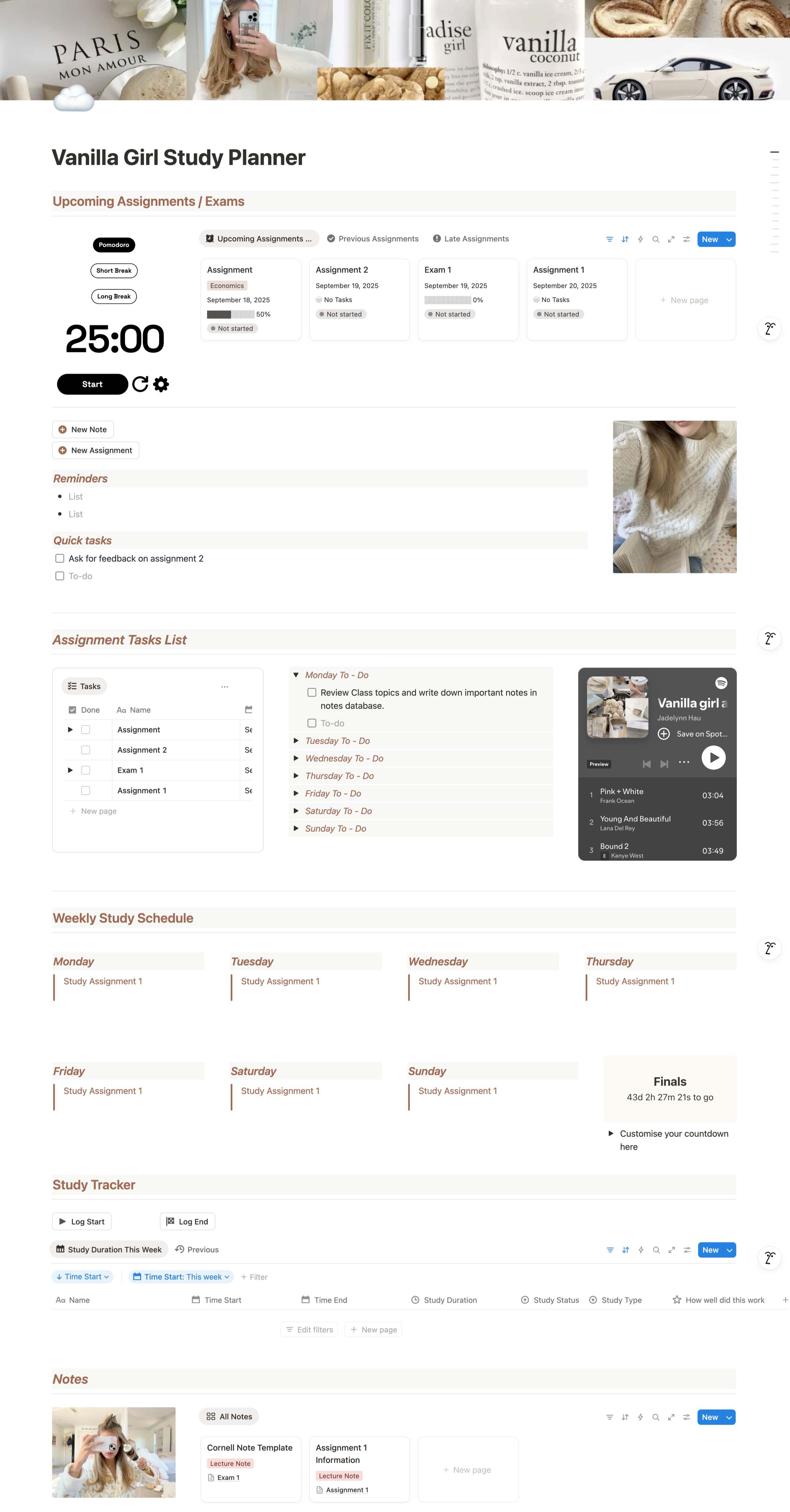 Step into your organised academia era with this free Notion study planner — built to help you stay on top of assignments, and actually enjoy your study routine. Whether you’re prepping for finals or romanticising cafe study days, this clean, customisable layout is here to support your productivity without the overwhelm.